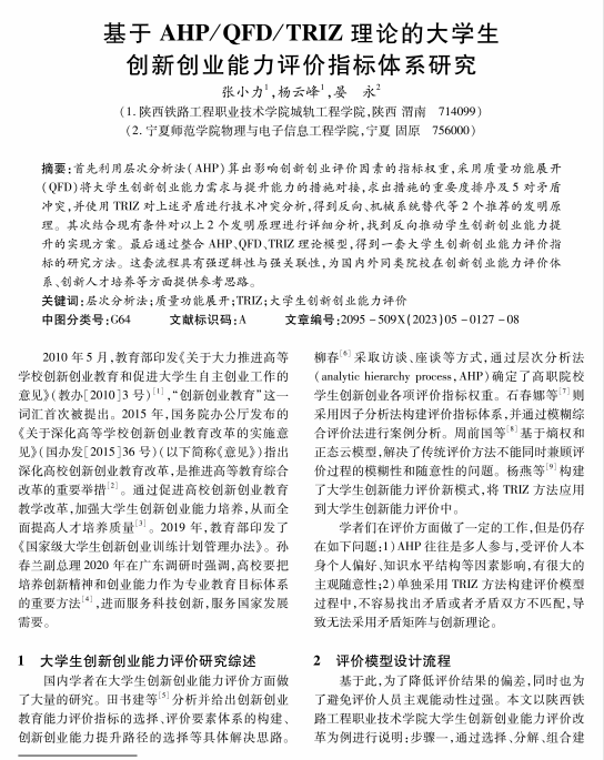 基于AHP/QFD/TRIZ理论的大学生创新创业能力评价指标体系研究