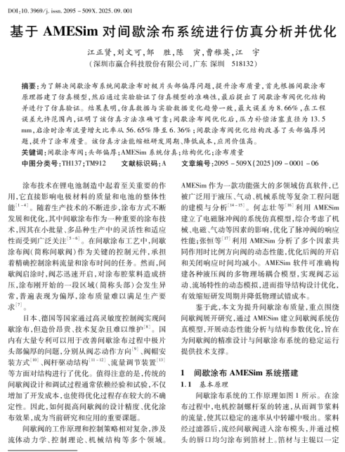 基于AMESim对间歇涂布系统进行仿真分析并优化