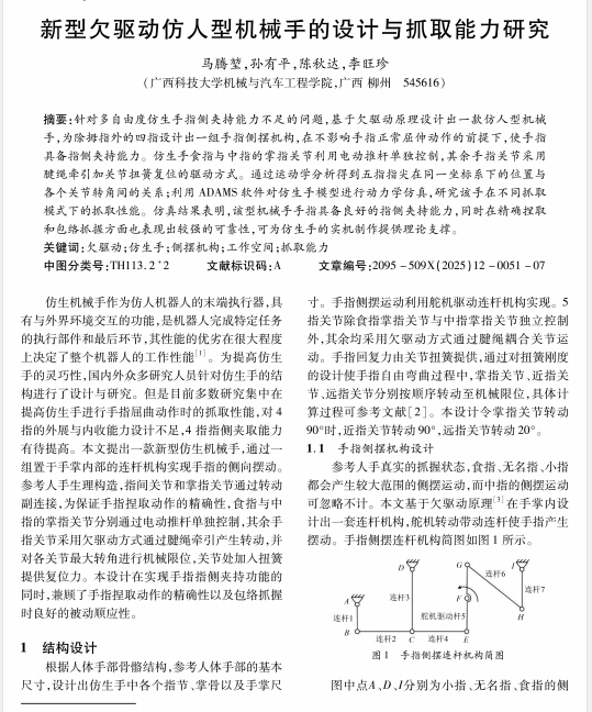 新型欠驱动仿人型机械手的设计与抓取能力研究