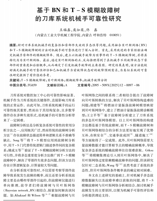 基于BN和T-S模糊故障树的刀库系统机械手可靠性研究