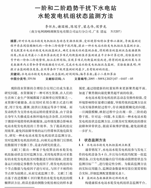 --阶和二阶趋势干扰下水电站水轮发电机组状态监测方法