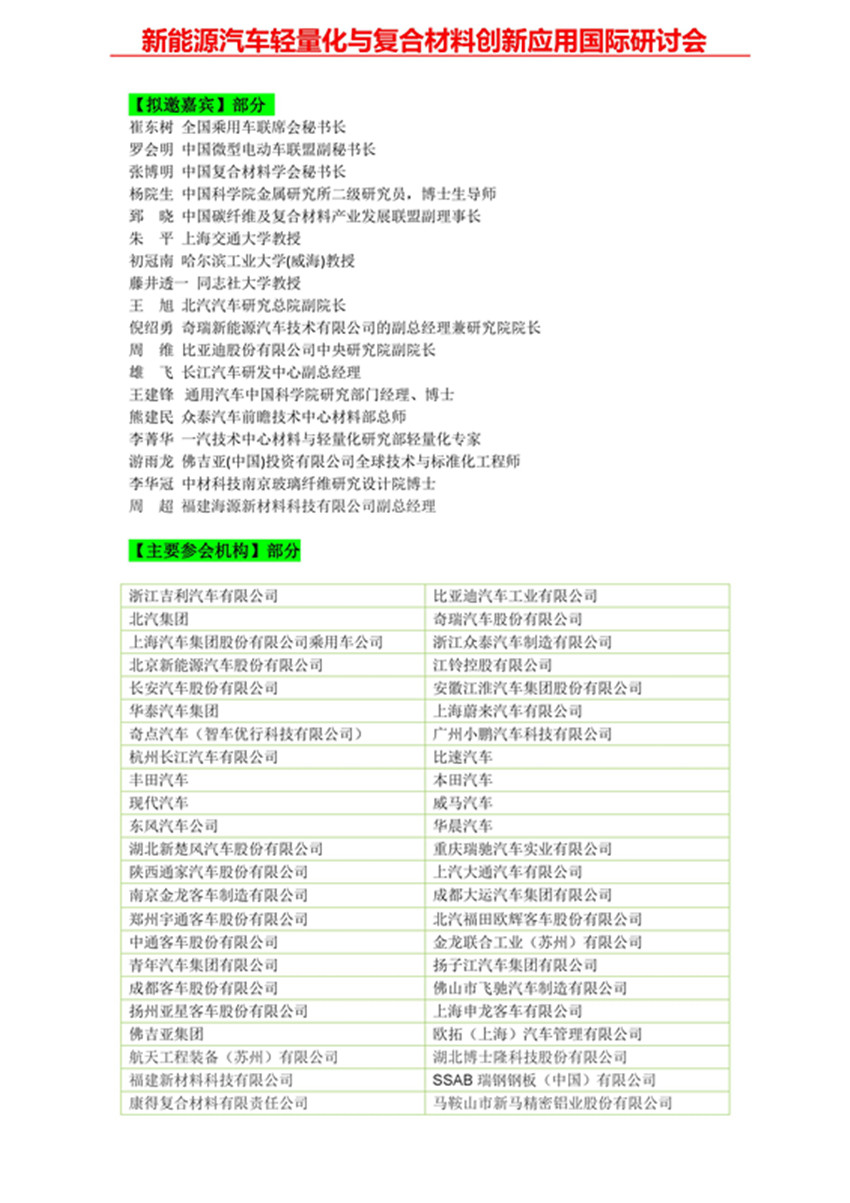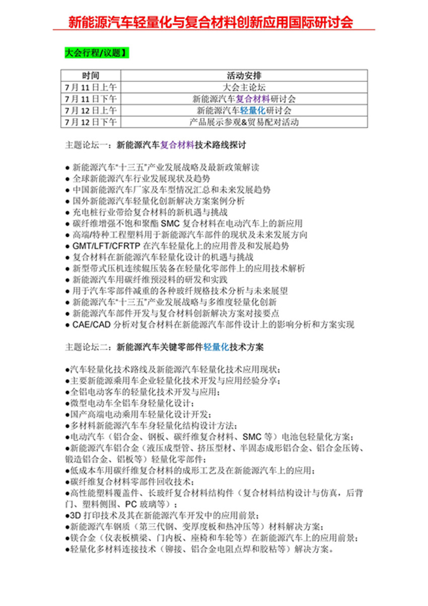 新能源汽车轻量化与复合材料创新应用国际研讨会