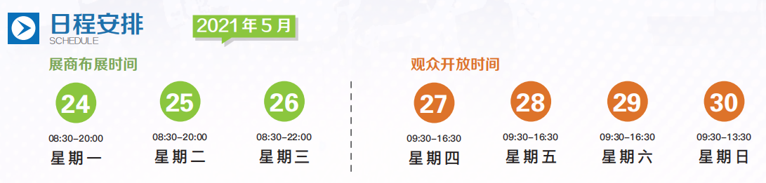 【日程安排】 2021年5月27-30日 重庆国际博览中心