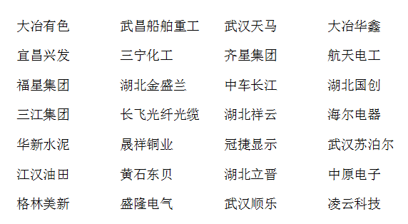黄石市下陆区铜冶炼及深加工产业集群 大冶市饮料食品产业集群 黄石(大冶)高端装备制造产业集群 黄石市电子信息产业集群