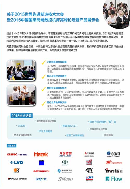 2015世界先进制造技术大会 暨2015中国国际高档数控机床高峰论坛暨产品展示会