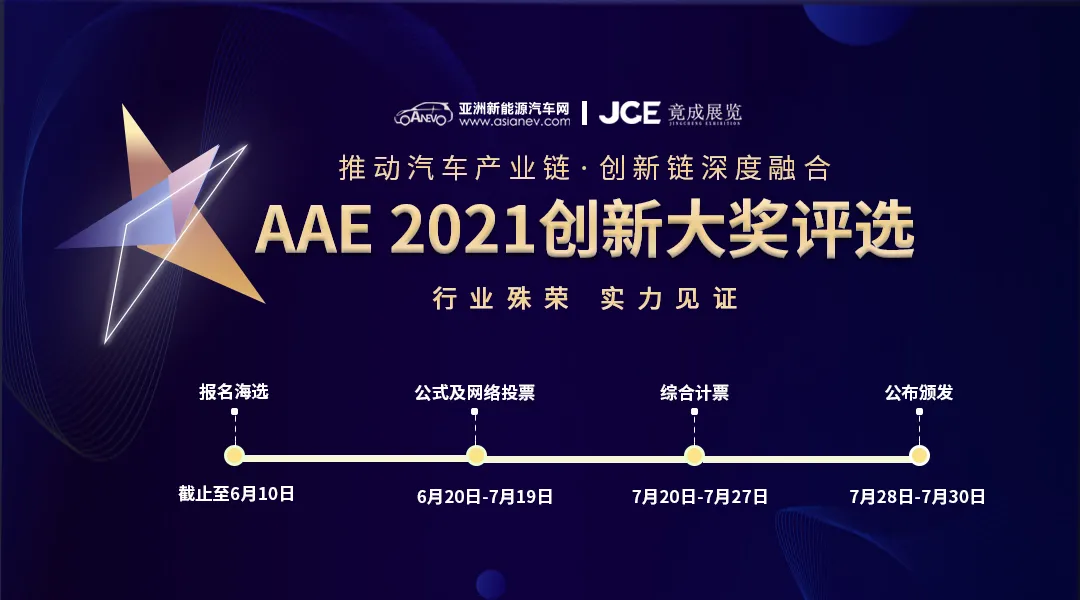 AAE 2021创新大奖将于2021年7月28-30日将在深圳举行的2021深圳国际先进汽车技术高峰论坛暨AAE 2021创新大奖颁奖盛典上揭晓并颁奖!届时将组织行业领导、专家、媒体、用户及企业代表齐聚深圳,从线上到线下打造营销闭环,举行盛大的评选颁奖典礼,全面提升获奖企业的品牌知名度。行业殊荣,你值得拥有。