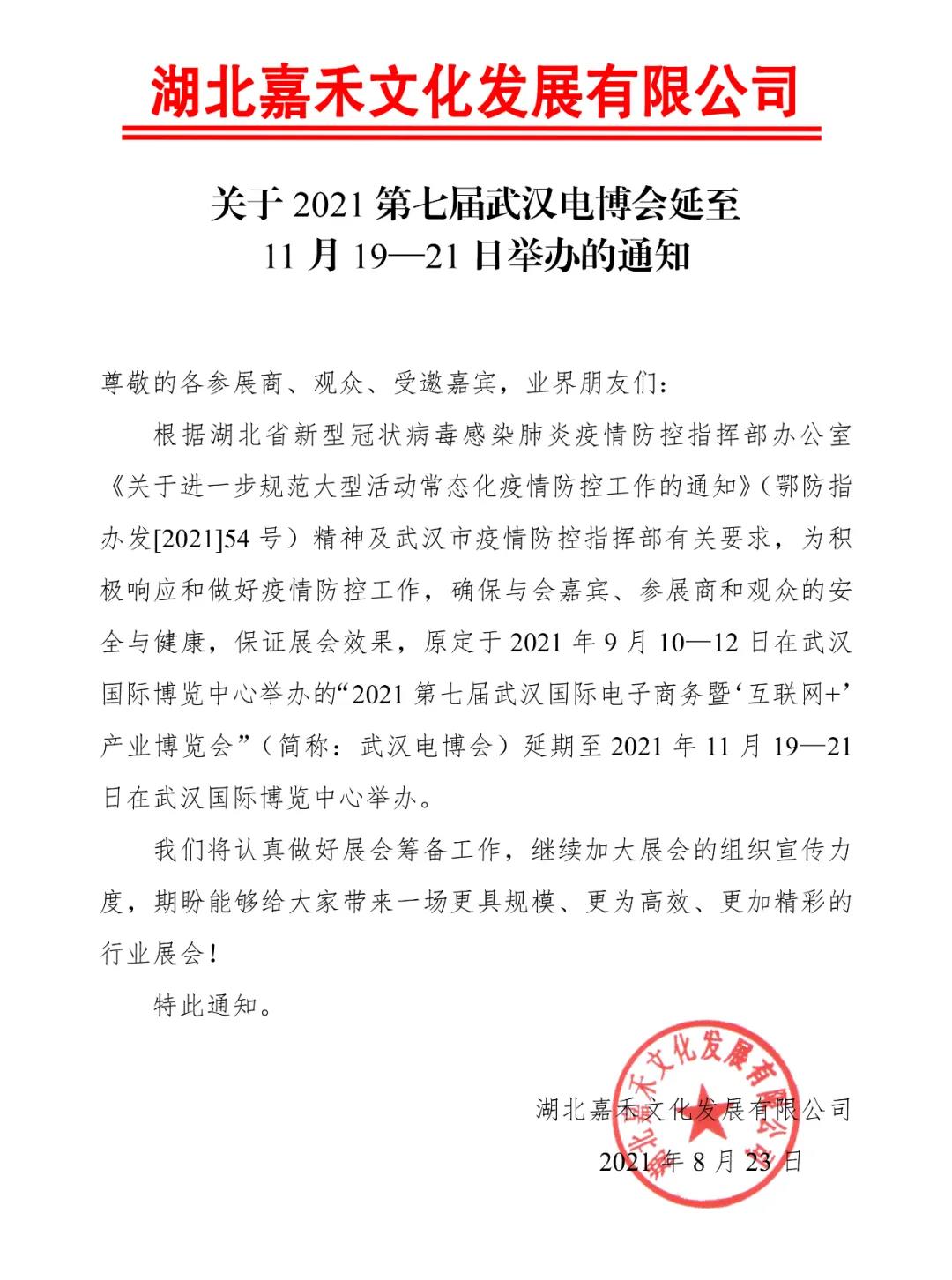 关于2021第七届武汉电博会延至11月19—21日举办的通知