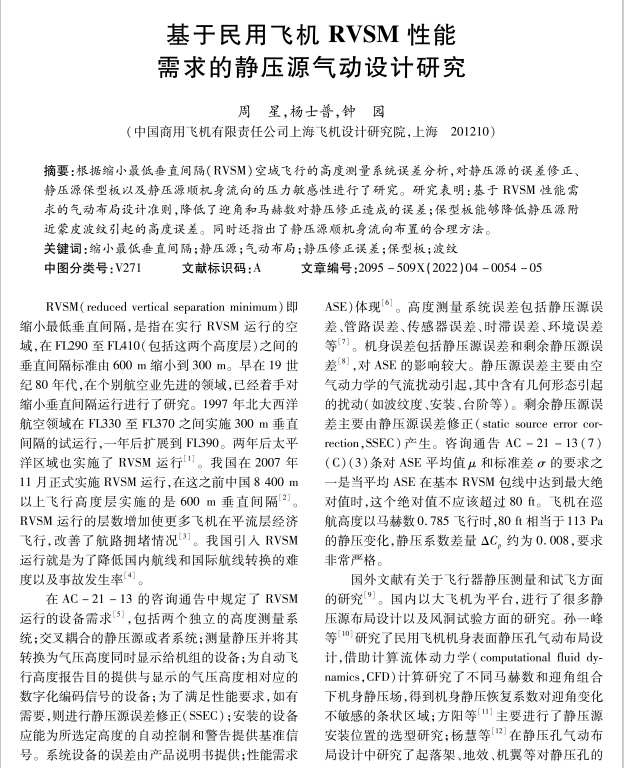 基于民用飞机 RVSM 性能需求的静压源气动设计研究