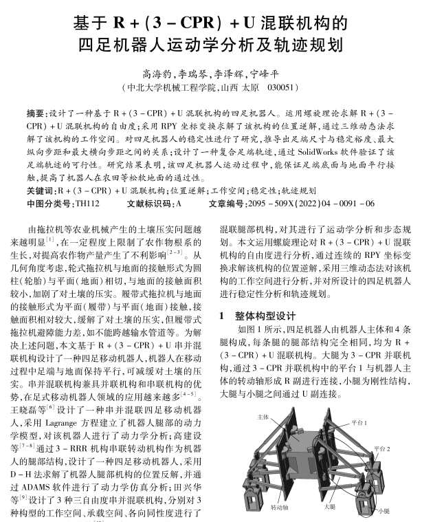 基于R+(3- CPR)+U混联机构的四足机器人运动学分析及轨迹规划
