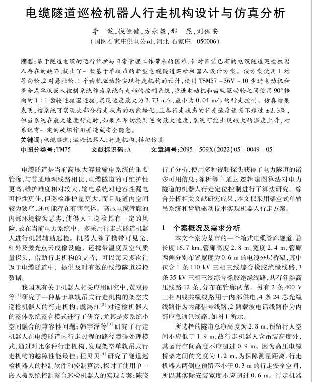 电缆隧道巡检机器人行走机构设计与仿真分析