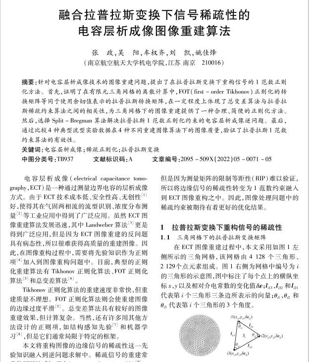 融合拉普拉斯变换下信号稀疏性的电容层析成像图像重建算法