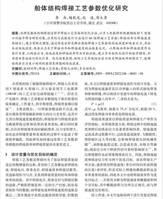 船体结构焊接工艺参数优化研究