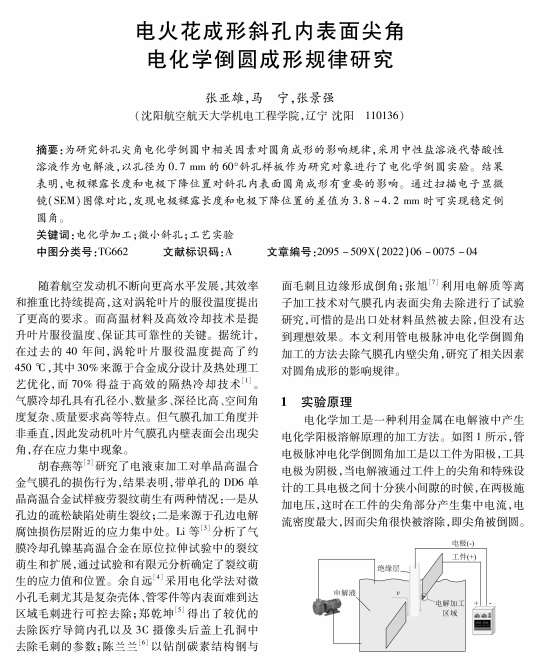 电火花成形斜孔内表面尖角电化学倒圆成形规律研究