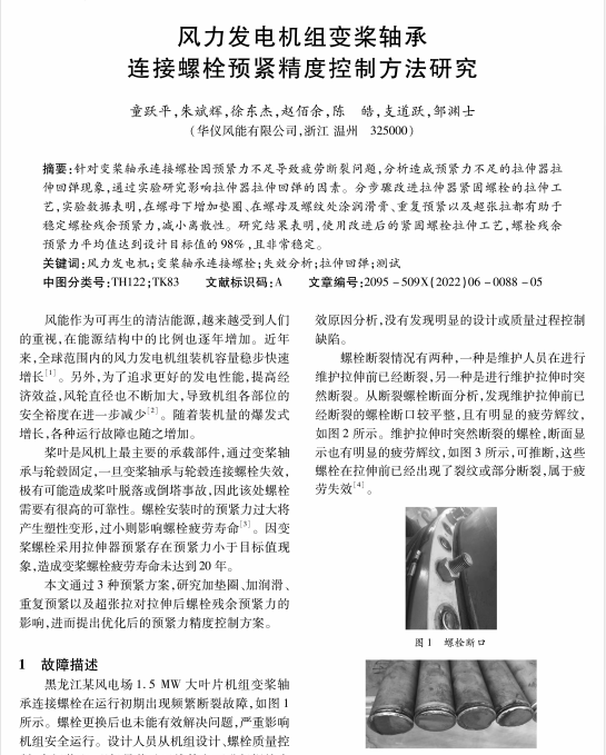 风力发电机组变桨轴承连接螺栓预紧精度控制方法研究