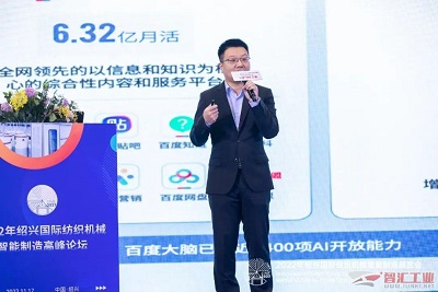 百度智能云智慧工业事业部产品战略生态与运营总监关越先生分享了《百度智能云开物 AI+工业互联网平台》主题报告,重点介绍了百度智能云开物通过AI+工业互联网点线面体赋能纺织行业,从工业质检打造化纺软硬一体解决方案、构建基于多模态数据的安全生产、AI结合运筹学优化资源配置、搭建区域级产能共享平台以优化产业链资源配置四个方面重点讲解。
