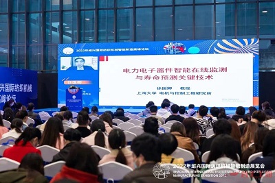 上海大学教授、上海大学电机与控制工程研究所所长徐国卿先生,鉴于防疫要求,通过在线形式分享了《电力电子器件智能在线监测与寿命预测关键技术》主题报告。徐国卿教授讲到,预诊断与健康管理是工业4.0时代制造装备业的重要技术发展方向,电力电子器件作为机电传动系统中的核心器件,对系统的可靠性具有重要影响。徐教授从功率半导体工作机理入手,分析了电力电子器件开关特性对可靠性状态的表征意义;并介绍了电力电子-电机系统的高频模型与面向装置的电力电子器件非侵入式在线监测方法;深入讨论基于电力电子特征参数和数据驱动的电力电子器件寿命预测技术。
