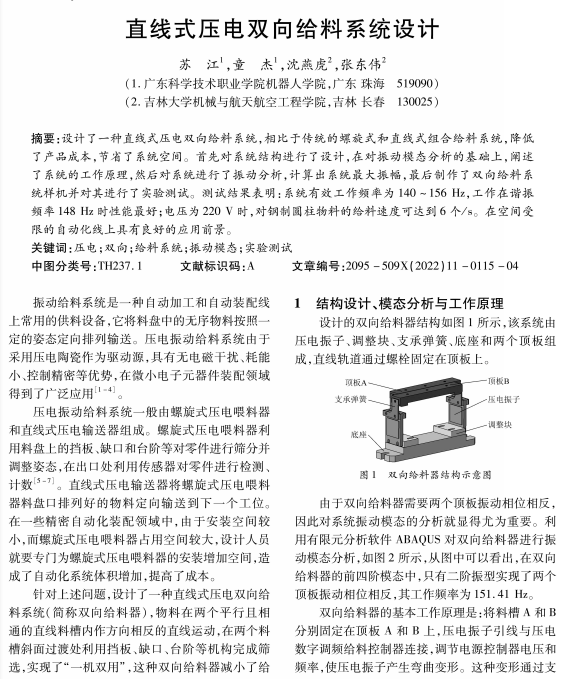 直线式压电双向给料系统设计