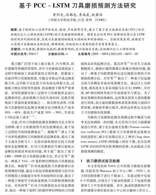基于PCC- LSTM 刀具磨损预测方法研究