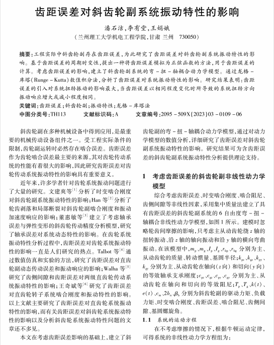 齿距误差对斜齿轮副系统振动特性的影响