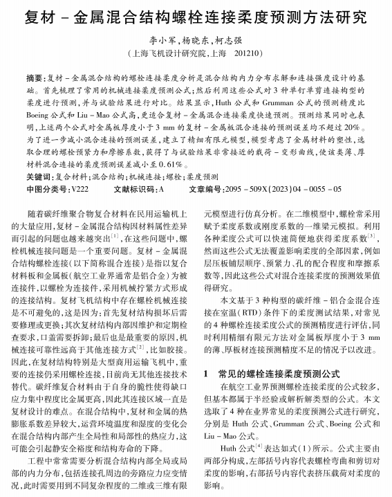 复材–金属混合结构螺栓连接柔度预测方法研究