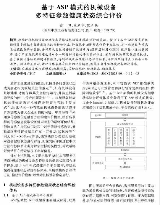 基于ASP模式的机械设备多特征参数健康状态综合评价