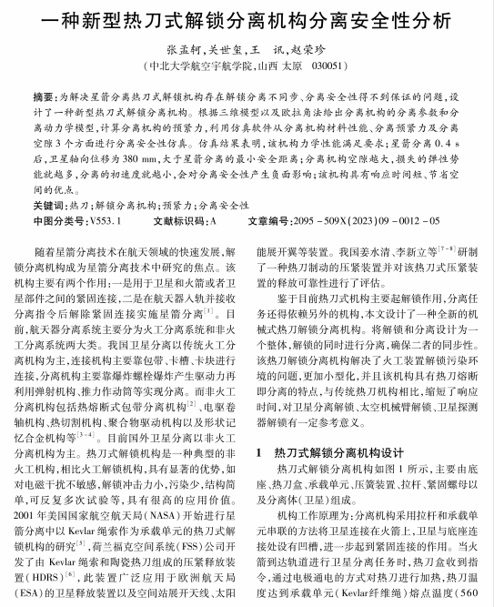一种新型热刀式解锁分离机构分离安全性分析