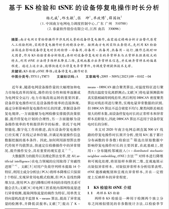 基于KS检验和 tSNE的设备停复电操作时长分析