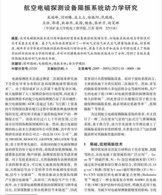 航空电磁探测设备隔振系统动力学研究