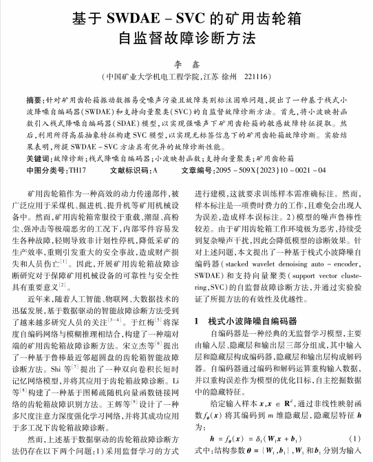 基于SWDAE-sVC的矿用齿轮箱自监督故障诊断方法