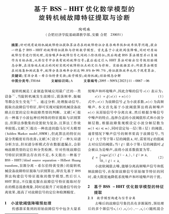 基于BSS - HHT优化数学模型的旋转机械故障特征提取与诊断