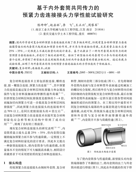 基于内外套筒共同传力的预紧力齿连接接头力学性能试验研究