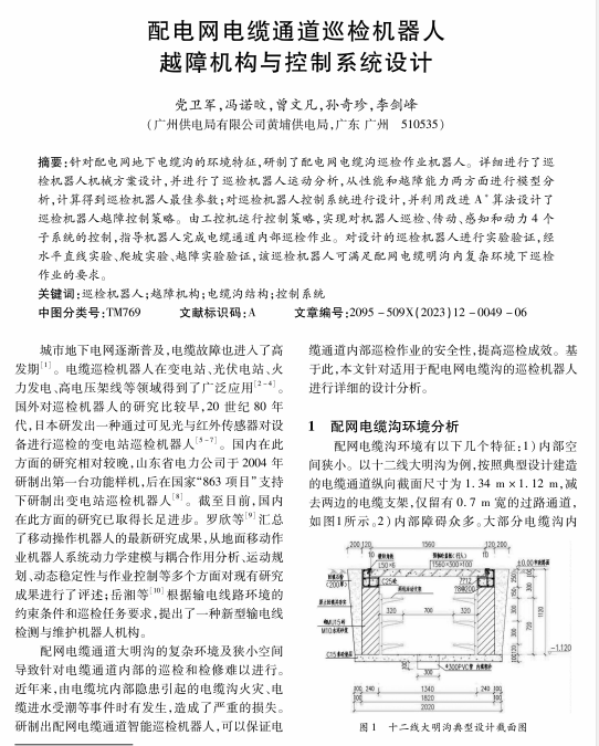 配电网电缆通道巡检机器人越障机构与控制系统设计