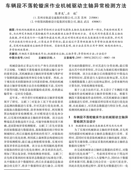 车辆段不落轮镟床作业机械驱动主轴异常检测方法