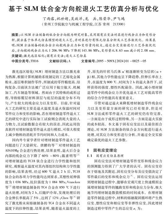 基于 SLM 钛合金方向舵退火工艺仿真分析与优化