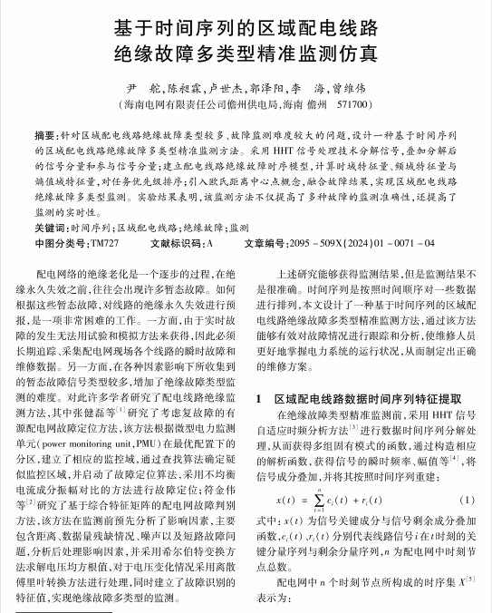 基于时间序列的区域配电线路绝缘故障多类型精准监测仿真