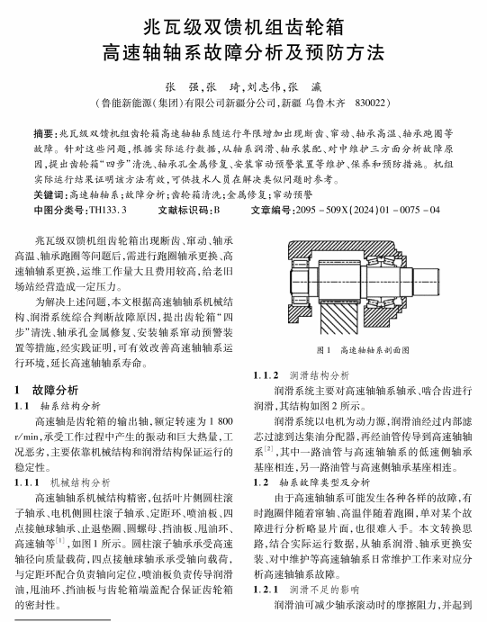 兆瓦级双馈机组齿轮箱高速轴轴系故障分析及预防方法