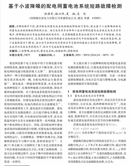 基于小波降噪的配电网蓄电池系统短路故障检测