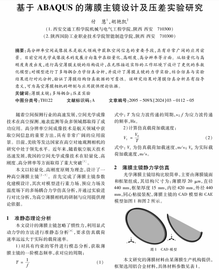基于ABAQUS的薄膜主镜设计及压差实验研究