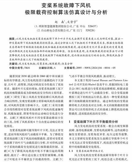 变桨系统故障下风机极限载荷控制算法仿真设计与分析