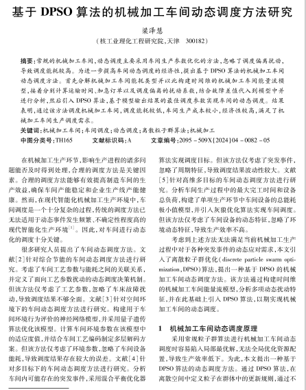 基于DPSO算法的机械加工车间动态调度方法研究