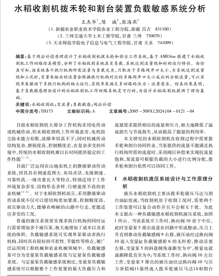 水稻收割机拨禾轮和割台装置负载敏感系统分析