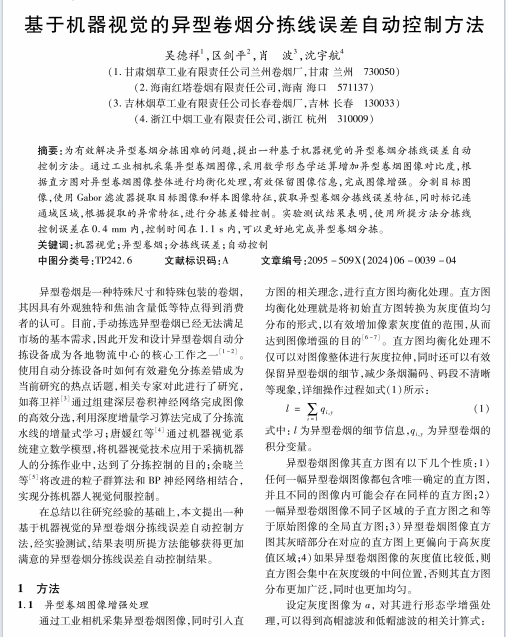 基于机器视觉的异型卷烟分拣线误差自动控制方法