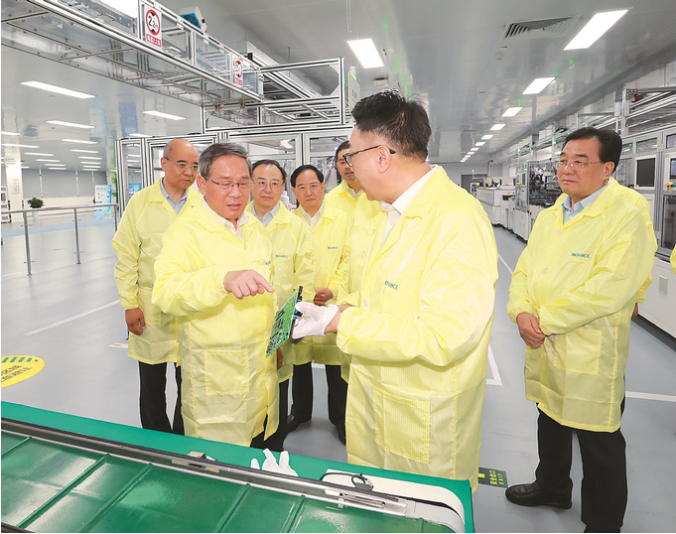 李强首先来到苏州汇川技术有限公司,察看最新产品展示,参观生产车间,了解企业研发生产工业机器人部件和汽车、装备领域的电机驱动及控制系统等情况。李强说,高端化、智能化、绿色化是制造业发展的重要方向,要继续鼓励和支持企业主动融入国家战略,瞄准国际先进水平,聚焦主业精耕细作,依靠科技创新带动产业创新、赢得发展先机。在思必驰科技股份有限公司,李强听取企业在人工智能软件、芯片等方面研发进展介绍,了解向汽车、家电等行业提供产品解决方案情况,体验语言大模型技术。李强说,大模型的迅猛发展,正在催生研发设计和生产制造方式颠覆性变革。要发挥我国市场规模大、需求层次多、应用场景丰富等优势,着力推动面向各行业各领域的垂直应用,促进人工智能与实体经济深度融合,加快培育壮大智能产业。