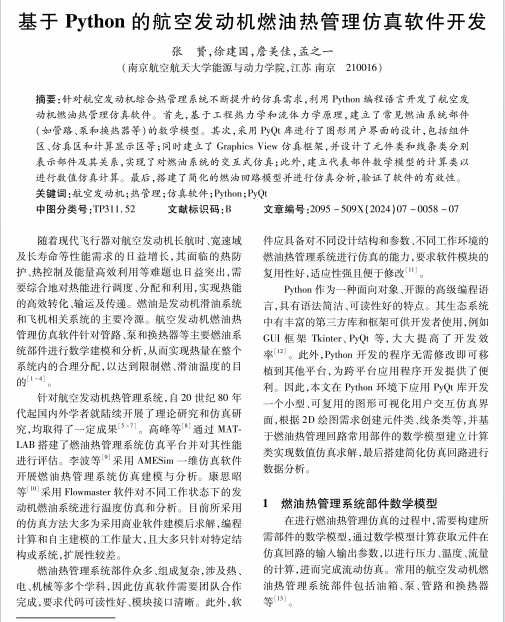 基于 Python 的航空发动机燃油热管理仿真软件开发