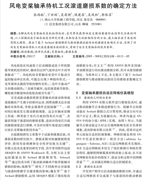风电变桨轴承待机工况滚道磨损系数的确定方法