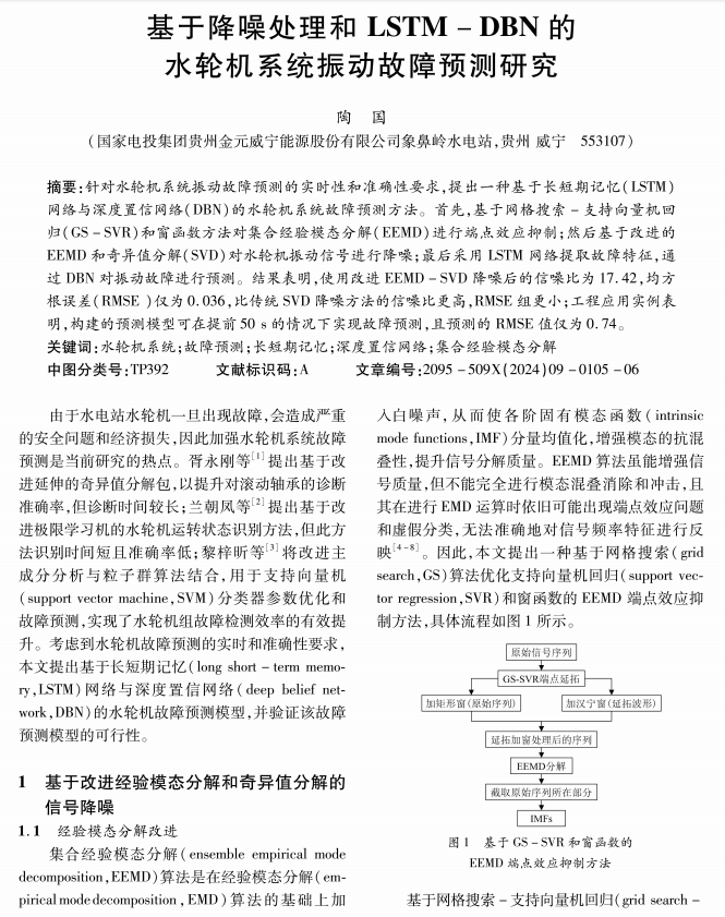 基于降噪处理和LSTM-DBN的水轮机系统振动故障预测研究