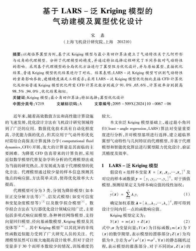 基于 LARS -泛Kriging 模型的气动建模及翼型优化设计