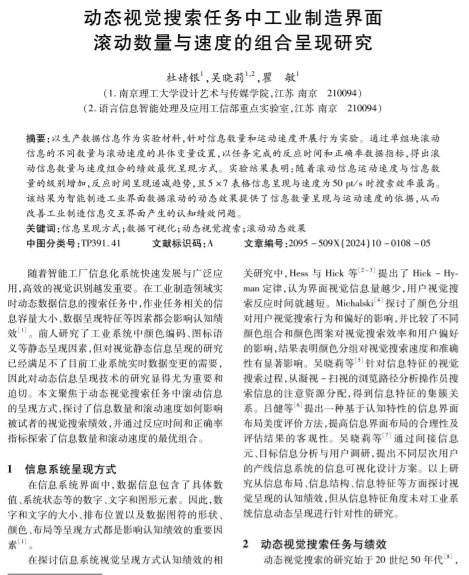 动态视觉搜索任务中工业制造界面滚动数量与速度的组合呈现研究