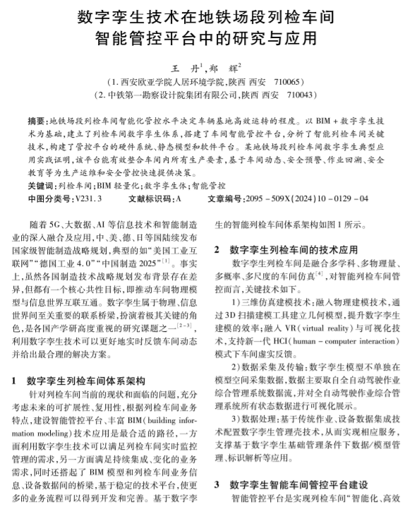数字孪生技术在地铁场段列检车间 智能管控平台中的研究与应用