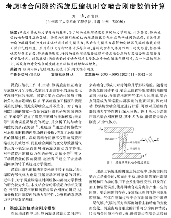 考虑啮合间隙的涡旋压缩机时变啮合刚度数值计算